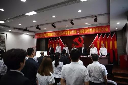 4月27日,在雄壮的国歌声中,中共买球app软件控股集团机电工程技术有限公司党委第一次党员大会暨成立大会在机电集团二楼报告厅隆重召开。集团党委副书记、纪委书记冯万涛,集团党委组织部(领导人员管理部)部长、人力资源部部长李小波出席会议。机电工程公司、研究院、智能制造公司三个支部全体党员参加会议。